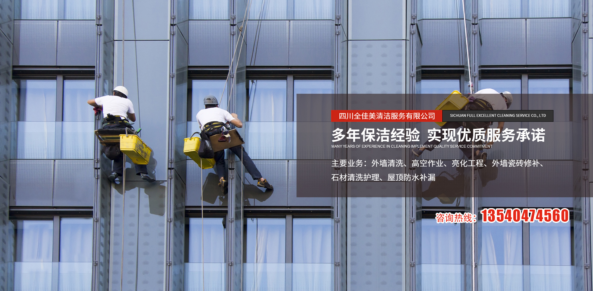四川全佳美清潔服務有限公司成立于2017年11月20日,注冊資本200萬元人民幣,是一家專業(yè)從事高空外墻清洗,外墻維修,開荒保潔,石材養(yǎng)護,外墻防水等一體化的工程服務公司。公司先后服務于成都鐵路培訓學校,雙流空港酒店,省體育館等寫字樓及工業(yè)園區(qū)的外墻清洗保潔及維修服務。經過多年的發(fā)展與努力,公司已具備一定的規(guī)模及實力?,F擁有一支技術精湛的服務團隊,以高標準的服務品質,專業(yè)的安全技術實力,為全川不同群體的客戶提供更安全,更周到的清洗服務解決方案,期待與你的合作。